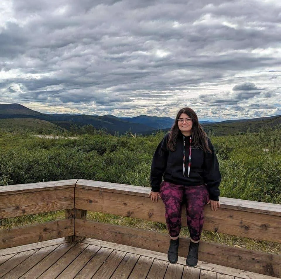 She co-created #SpeakGwichinToMe and Treaty Talks NWT. She is a Yukon College graduate and is working on her Early Learning and Child Care Certificate.